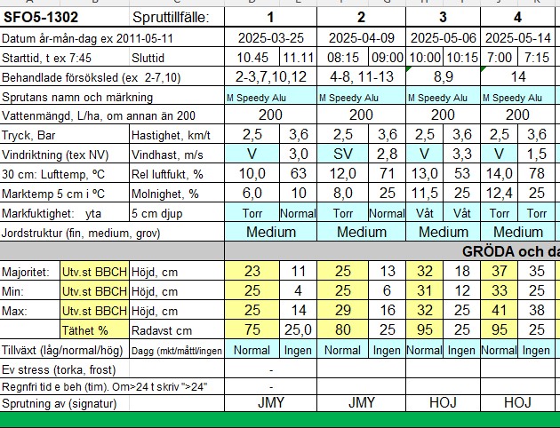 | 11 | 1 | St. 25 - 25,Tidig vår, ej frost | 2025-04-09 | 25 | 0,2 l Kerb 400 SC | | L |