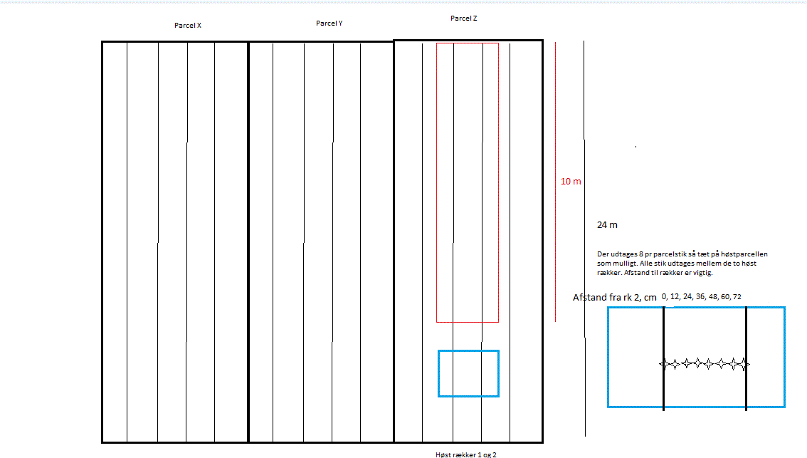| Parcel | PLANTEBESTAND planter/m2. Antal planter tælles på 10 m række. m2 måleflade (korrigeret for rækkeafstand) og total antal planter indberettes. | |