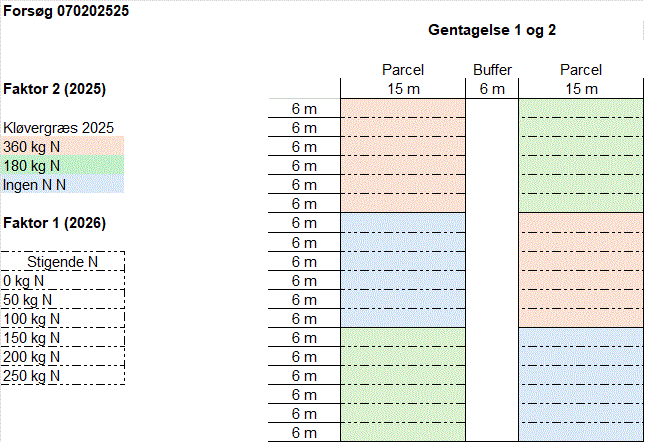 VEJLEDNING TIL FORSØGSBEHANDLING: De tre forskellige kløverprocenter etableres i 2025 ved følgende behandling: