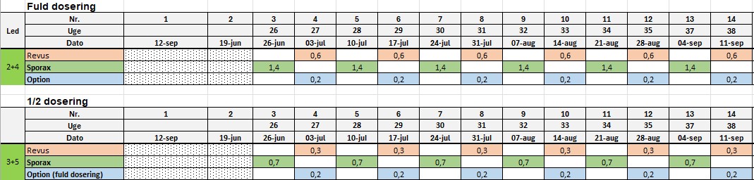 - Led 3 og 5 er halv dosis mht. kartoffelskimmelbekæmpelse.